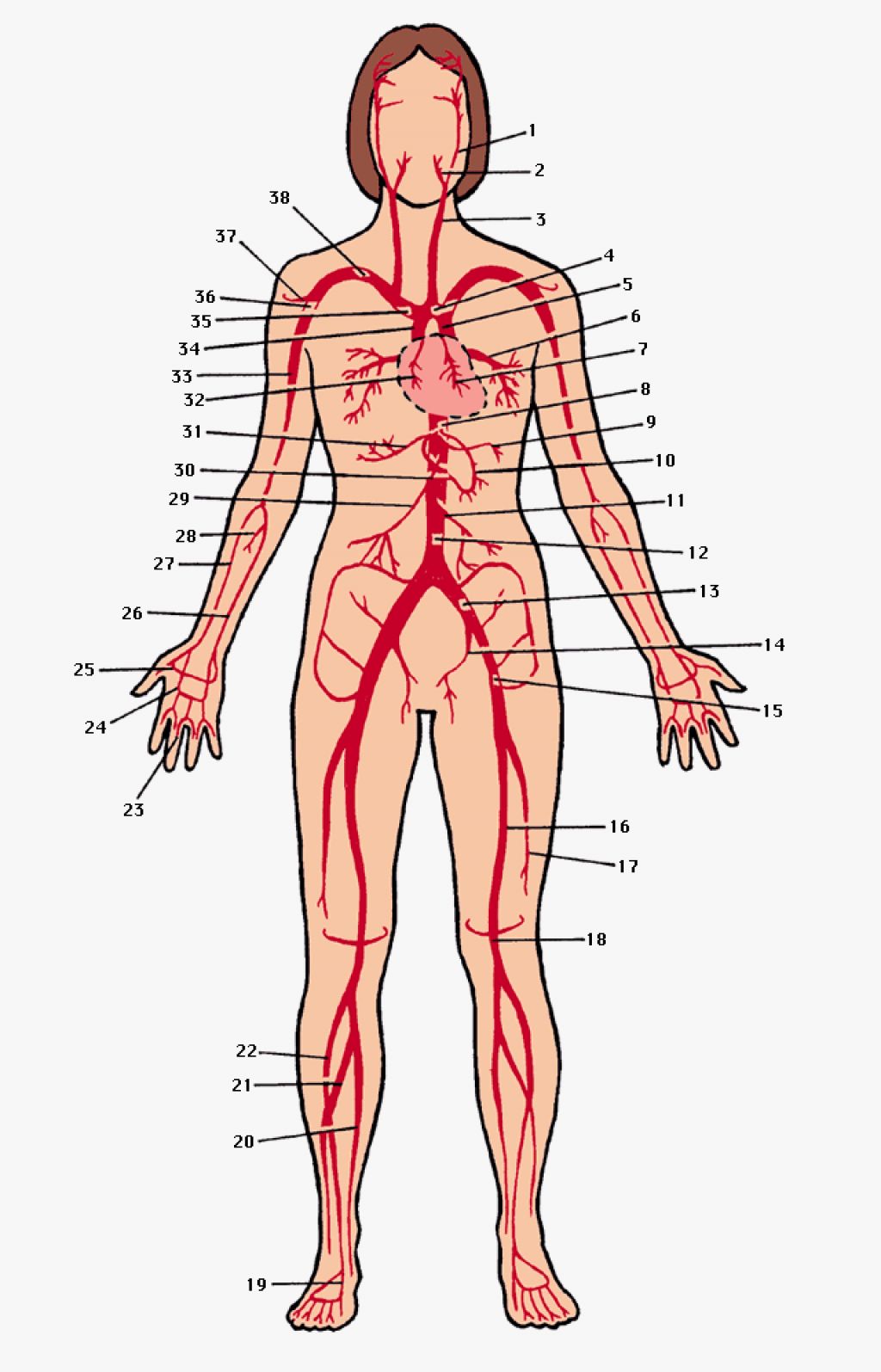 Anatomy Label Major Arteries And Veins / Major Arteries Pulse Points And Veins : Arteries usually colored red because oxygen rich, carry blood away from the heart to capillaries within the tissues.. Label the arteries of the abdomen. Because arteries are moving blood being pumped out by the heart,. They carry blood from the tissues and towards the heart. Arteries only carry oxygenated blood. Finally, make sure you know what each artery/vein supplies/drains.